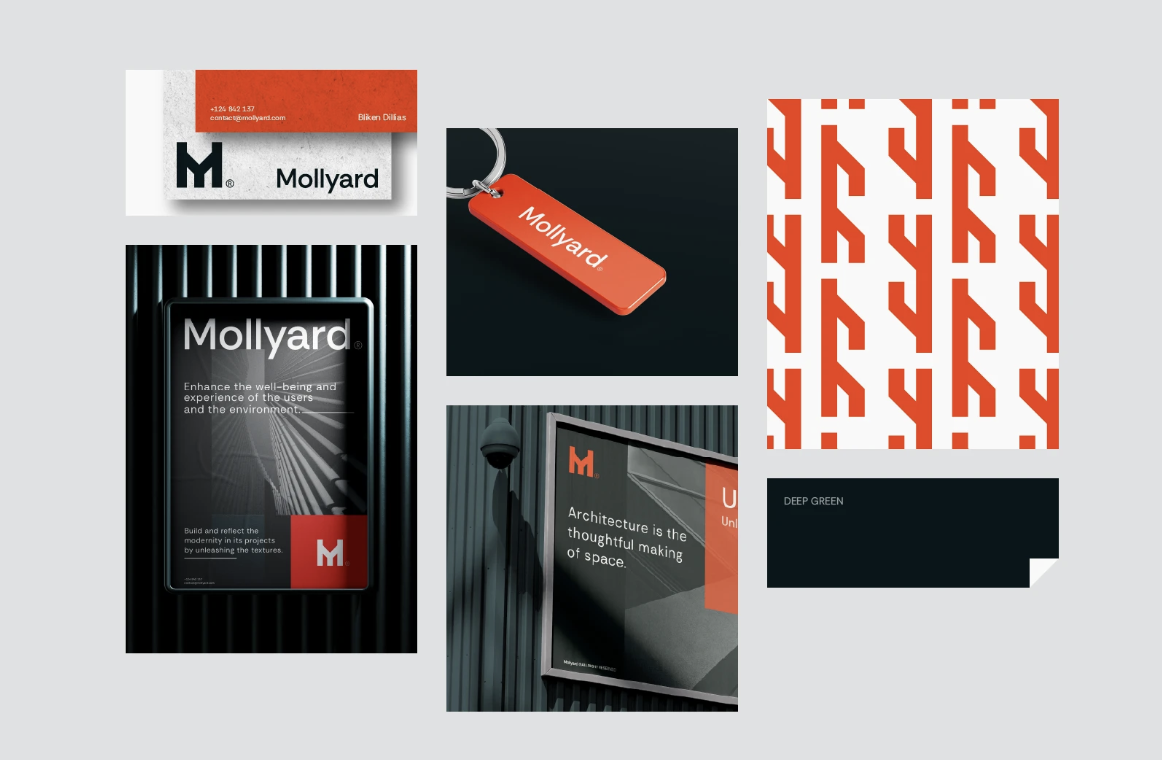Mollyard is a conceptual architecture brand developed as part of our internal exploration into how modern design and construction companies can express depth, structure, and innovation through visual identity. The goal was to create a visual language that feels architectural in itself—bold, balanced, and rooted in the materials and geometry that define great spaces.
